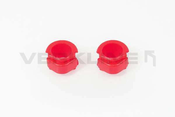 Polyurethane bushings work ideally in performance suspensions. Rubber suspension bushings are a proven compromise in performance vehicles. When additional horsepower is added, plus size tires then OEM or rubber bushings tend to stress beyond design limits. Polyurethane bushings are strong enough to control movement and maintain wheel alignment. OEM part nr 8A0411327