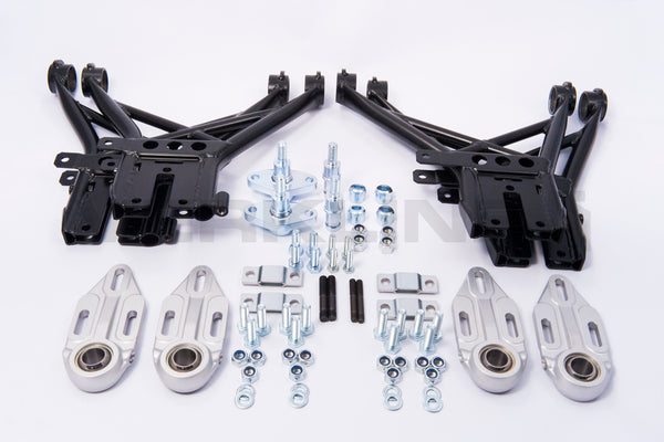 Notice: minor tools are required to install rear wishbones bolts. You need to have a burner to heat the rear uprights for the bolt to be pushed inside. Instructions are provided to the customer on the installation of the kit. Front wishbones increase significantly caster angle.